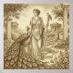 Inspired by classical mythology and antique illustration traditions, this artwork captures the elegance of the goddess through flowing drapery, architectural detail, and the timeless symbolism of her sacred companion.