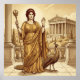 Hera, the majestic queen of the Olympian gods, is depicted here standing before the temples of ancient Greece, accompanied by her sacred peacock. Revered as the goddess of marriage, family, and royal authority, Hera represents dignity, strength, and the enduring power of divine sovereignty.