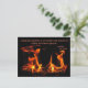 This postcard depicts the abstract energy of fire in a wood burning stove. The orange, gold and yellow flames appear as joyful dancing characters. They are set off by a black background. The quotation is from the pre-Socratic Greek philosopher, Heraclitus of Ephesus, who lived from c.535–c.475 BCE. It reads: ... it always was and will be: an ever-living fire, with measures of it kindling, and measures going out. It can be customised or removed.