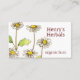 A pretty botanical business card featuring illustrations of feverfew flowers medicinal herb sketched with ink and painted with watercolor. On the reverse is a warm shade of orange. Customise the text to fit your business details.