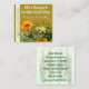 Square business cards with herbs design and text templates on both sides. Small cards can make a big impact. Gold colour with pale green text for business title or name. Add one more line in gold script. A vertical template at the edge allows for attention grabbing text in orange. The beautiful herbal design includes a calendula flower, goldenseal and catnip. The design creates a layered appearance. On the back, use the green text template for location information, hours of operation, website, contact or anything. Drying herbs hang as the background image over pale green.