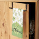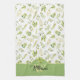 Herbal Green Greenery Pattern Monogram on White Tea Towel