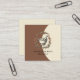 An illustrated herbalist business card with mortar pestle and leafy vines, on a two toned cream and cocoa brown background, with a unique square card. Simple elegant serif typography.