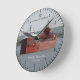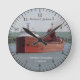 The clock did not take as long to arrive as I thought it might and was extremely well packaged. I didn't do the measurements so I didn't realize it is a little smaller than the average clock but that does not matter (just make sure you check if that's important to you).It is really nifty! It seems very solid and well made not flimsy at all. It has been going well and has kept good time in its few weeks on my wall. Nice product. Gets noticed too! Nicer in real life than the picture but true to the picture