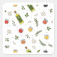 Seamless food pattern featuring olive oil bottles, garlic cloves, rosemary sprigs, parsley leaves, and colorful spice jars on a black background. This hand-drawn style illustration is perfect for kitchen décor, restaurant branding, packaging design, recipe blogs, textiles, wallpapers, and culinary-themed projects. Modern flat design with vibrant colors and clean outlines.