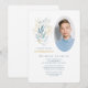 A nature, watercolor, photo invitation in blue and white with a touch of gold. Featured as a boy's communion invitation, it's suitable for either gender and birthday parties too. (<a href="https://www.freepik.com/free-photos-vectors/background">Background photo created by freepik - www.freepik.com</a>). (<a href="https://www.freepik.com/free-photos-vectors/watercolor">Watercolor vector created by azerbaijan_stockers - www.freepik.com</a>). <br/><br/>The card is easy to customise with your wording, font, font colour, paper shape options and choice of six paper types.<br/><br/>Not exactly what you're looking for? All our products can be custom designed to meet your needs at no extra charge.<br/><br/>Simply contact us at askcottonlamb@gmail.com.<br/><br/>Coordinating products available: Just ask us!"