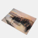 This design features a painting by the American artist Charles M. Russell (1864–1926). It shows a herd of American buffalo in a desert landscape. The animals are gathered around a lake or river, from which they are drinking. The bison have stocky bodies covered with brown hair; they also have large horns at the top of their heads. Bison are the biggest mammals that live wild in North America. There were millions of bison that roamed the prairies and valleys of the USA in the 19th century, but, because of mass hunting, there are now only thousands of the creatures remaining. The American bison is often used in North America in official seals, flags and logos. For example, in 2016, the American bison became the national mammal of the United States. This artwork was painted by Charles Russell in 1895.