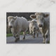 Beef cattle farm or ranch business card template with a close-up front view of cream coloured Charolais cattle walking along the road in France.