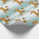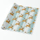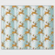 A charming blue and gold Christmas wrap, it features a pattern of Santa's reindeer (in gold) running across the glistening ice. There are white sparkles and stars all around them. This pretty gold and blue wrapping paper will be sure to add a truly festive touch to your gifts this holiday season.