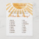 Watercolor painted Sun in Sunshine yellow, orange colours themed baby shower What the Story Game Card with text " here comes the son" you can personalise to your needs. Perfect for boy baby shower selebration. Matching items you can find in collection from my store PatternDigitPics.