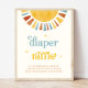 This boho sign features adorable watercolor sun, set against a soft vintage white background. The muted colours of yellow, orange, and blue, along with the retro font, create a warm and nostalgic vibe. Place this sign on your diaper raffle table to let guests know how to participate and add a whimsical touch to your baby shower décor.