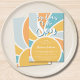 This cheerful sun-themed boy's baby shower invitation features "Here Comes The Son" in stylish typography on a colourful sunburst background.