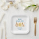 These baby shower paper plates feature the text "Here Comes The Son" in stylish blue typography with a cute yellow watercolor sun.