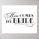 Announce the bride's arrival with this charming "Here Comes the Bride" sign featuring vintage art deco–inspired typography with elegant swash flourishes. Designed as a ceremony sign for the ring bearer or flower girl to carry or display as they walk down the aisle. The bold black and white lettering creates a striking, memorable moment. All text is fully customizable.