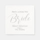 This classy and elegant bridal shower party napkin features a simple white background with the phrase "Here comes the bride" printed at the top in an elegant grey font. The title "Bride" is printed in a large script font. The bottom portion features the name of the bride-to-be followed by her future Mrs. name as a married woman. You can personalise the napkin to include your own custom name or other text.