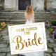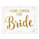 here comes the bride wedding sign gold