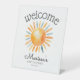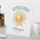 Greet your guests with a warm and sunny welcome with this cute baby shower sign from the Here Comes the Son collection. Featuring a soft watercolor sun and whimsical retro-inspired typography, this elegant sign sets the tone for a cheerful and heartfelt celebration. Customisable with the mum-to-be’s name and shower date, it makes for a beautiful keepsake as well.