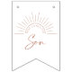 These adorable Here Comes The Son Bunting Flags make a great addition to you baby shower or baby sprinkle party decor! This bunting flag banner features a boho terracotta Here Comes The Son design and matches perfectly with the Boho Sun Modern Baby Shower suite. You can personalise this design by clicking on "Personalise this template" or if you wish to change the font, colours or arrange the design elements in a different way you can click on "Edit using Design Tool".