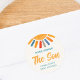 This sun-themed baby shower napkin is decorated with a colourful sun and stylish typography on a cream background. The text is customisable. Original Watercolor © Michele Davies.