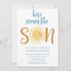 This cute sunshine invitation invites family and friends to your sun-themed boys' baby shower.
