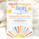 Celebrate your little sunshine with this 'Here Comes The Son' baby shower invitation. Featuring a warm, retro-inspired sun and soft neutral tones, this charming design is the perfect way to brighten up your special celebration