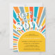 Are you planning a boy's baby shower? This colourful sun-themed boy's baby shower invitation features "Here Comes The Son" in retro typography on a bright sunburst background.