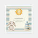 Brighten your baby shower with these "Here Comes the Sun" themed paper napkins! This design captures the joy of a new baby with playful watercolor elements including a cheerful sun, a cute bunny, and a colorful stacking toy. The soft blue and cream stripes create a tranquil backdrop, ideal for a boy's baby shower. These charming napkins are perfect for serving cake and treats, adding a special touch to your celebration's details. Guests will love the whimsical and heartwarming design that celebrates the new addition to your family.
