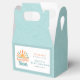 Send your guests home with a sunny little thank you gift using this charming “Here Comes the Son” gable favour box! Designed to match your retro beach baby shower theme, this favour box features the signature vintage sun and palm tree artwork in warm coastal tones of orange, teal, and golden yellow — a perfect way to wrap up your celebration in style.