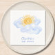 This cute baby shower napkin is decorated with a yellow watercolor sun, clouds, and stylish blue typography. Easily customisable. Original Watercolor © Michele Davies.
