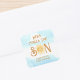 This cute boy's baby shower sticker features the text "Here Comes The Son" in stylish brown typography with a smiling yellow watercolor sun and blue sky. Easily customisable. Because we create our artwork you won't find this exact image from other designers. Original Watercolor © Michele Davies.
