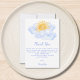 This cute boy's baby shower thank you card is decorated with a yellow watercolor sun, clouds, and stylish blue typography. Easily customisable. Original Watercolor © Michele Davies.