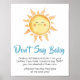 Make your event special with this Sunshine Baby Shower with our cute and lovely printable Don't Say Baby Sign featuring adorable Sonshine Baby Shower theme. Download, personalise, and create lasting memories with this perfect touch for your joyous celebration!