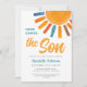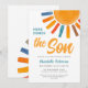 Invite family and friends to your sun-themed baby shower with this cute sunshine boys' baby shower invitation. It features the text "Here Comes The Son" in stylish typography with a brightly coloured watercolor sun. The back is decorated with a sun. Easily customisable. Original Watercolor © Michele Davies.