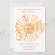 Celebrate the upcoming arrival with this bright and cheerful retro vibe sun-themed baby shower invitation. The design features a big sun with vibrant rays in classic shades of yellow, orange, and a hint of red at the centre, setting the tone for a joyful celebration. The phrase "Here Comes the Son" is displayed as part of the sun design, with "Son" in big script letters placed over the sun, cleverly using the centre of the sun for the "o" in "Son." At the bottom, all the event details are styled in a combination of font styles and colours—orange and red—that complement the sun's rays.