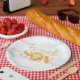 Our modern sunshine baby shower paper plates featuring a charming design of fluffy clouds, a radiant sun, and a delightful play on words.