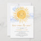 Invite family and friends to your sun-themed boy's baby shower with this cute baby shower invitation. It features the text "Here Comes The Sun" in stylish typography with a yellow watercolor sun and blue clouds. Easily customizable. Original Watercolor © Michele Davies.