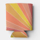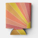 This can cooler has a mid-century modern design of the sun rising in shades of red, yellow, and orange.