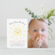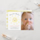 This simple and cute gender-neutral 1st / first birthday photo invitation features a white background with the smiling sun in watercolor. The reverse side features a white background with yellow stripes. Personalise for your needs. You can find more matching products at my store.