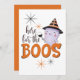 This Halloween card is a playful blend of charm and spookiness, perfect for sending festive greetings. The front features an adorable ghost, donned in a whimsical black and orange striped witch's hat, holding a glass of wine in its translucent hand. The cheeky caption, “Here for the Boos,” adds a punny twist, making it a delightful choice for those who enjoy a dash of humour with their Halloween spirit. On the back, the card offers a customisable message section where you can add a personal touch by including your own hauntingly heartfelt note and signing your names, making it a memorable keepsake for the recipient.