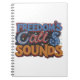 This note book features the text "Freedom's Call Sounds." in a dynamic arrangement of bold, colourful fonts. Each word uses a different colour, creating a vibrant and eye-catching design.