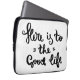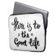 The sleeve is made of nice feeling material and seems very durable. I'm not sure how easy it'll be to clean, but the construction seems sound and the fabric is quick thick. I also like the double zipper. The printing is lovely and appears durable. The white on black contrast is nice, and the design very elegant.