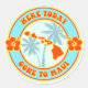 Classic 'Here Today Gone Today Maui' with hibiscus and palm trees. Maui Hawaii sticker.