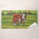 Hereford Cow & Cute Calf in Summer Pasture Bath Towel Set
