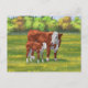 Hereford Cow & Cute Calf in Summer Pasture Postcard