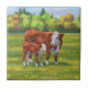 Hereford Cow & Cute Calf in Summer Pasture Tile