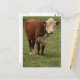 Green pastures and healthy Hereford cow make a great way to send greetings or reminders. Country style farm photo.