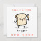 This humorous card featuring the text "Here's a Little Toast to Your New Home" and a cute illustration of a toast drinking champagne is perfect to send your house warming wishes to someone who appreciates humor and/or kawaii cartoon art. As the text can be changed you can use the card for other occasions. Click on "Personalize this template" to customize the message and names. If you wish to change the colors of the texts, go to "Edit using Design Tool".