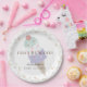 This sweet and cute "Here's the scoop!" gender-neutral ice cream themed baby shower paper plate features a mint green, a white vanilla and a purple ice cream with sprinkles and a cherry on a white background with faux gold doodled dots. Personalise for your needs. You can find more matching products at my store.