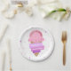 These cute birthday party paper plates feature a pink colour ice cream cone illustration with polka dots background. Personalise the birthday party paper plate by adding your child's name, age, and party details.