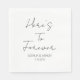White elegant and clean wedding napkins with the quote "here's to forever" in script calligraphy, the couple's names, and the date. All text is editable and can be personalised with a psalm, poem, or any message you'd like to add for this special occasion.